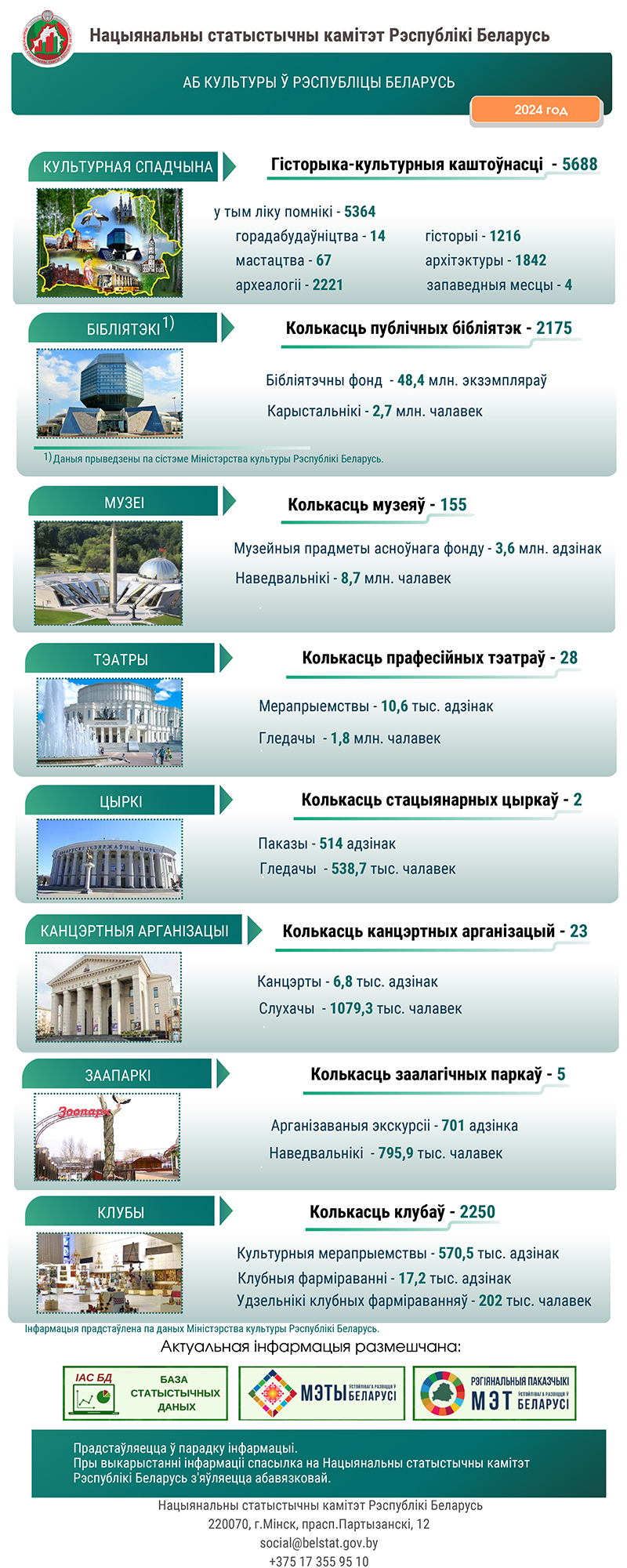 Нацыянальны статыстычны камітэт Рэспублікі Беларусь падрыхтаваў інфаграфіку, якая наглядна расказвае пра культуру нашай краіны.