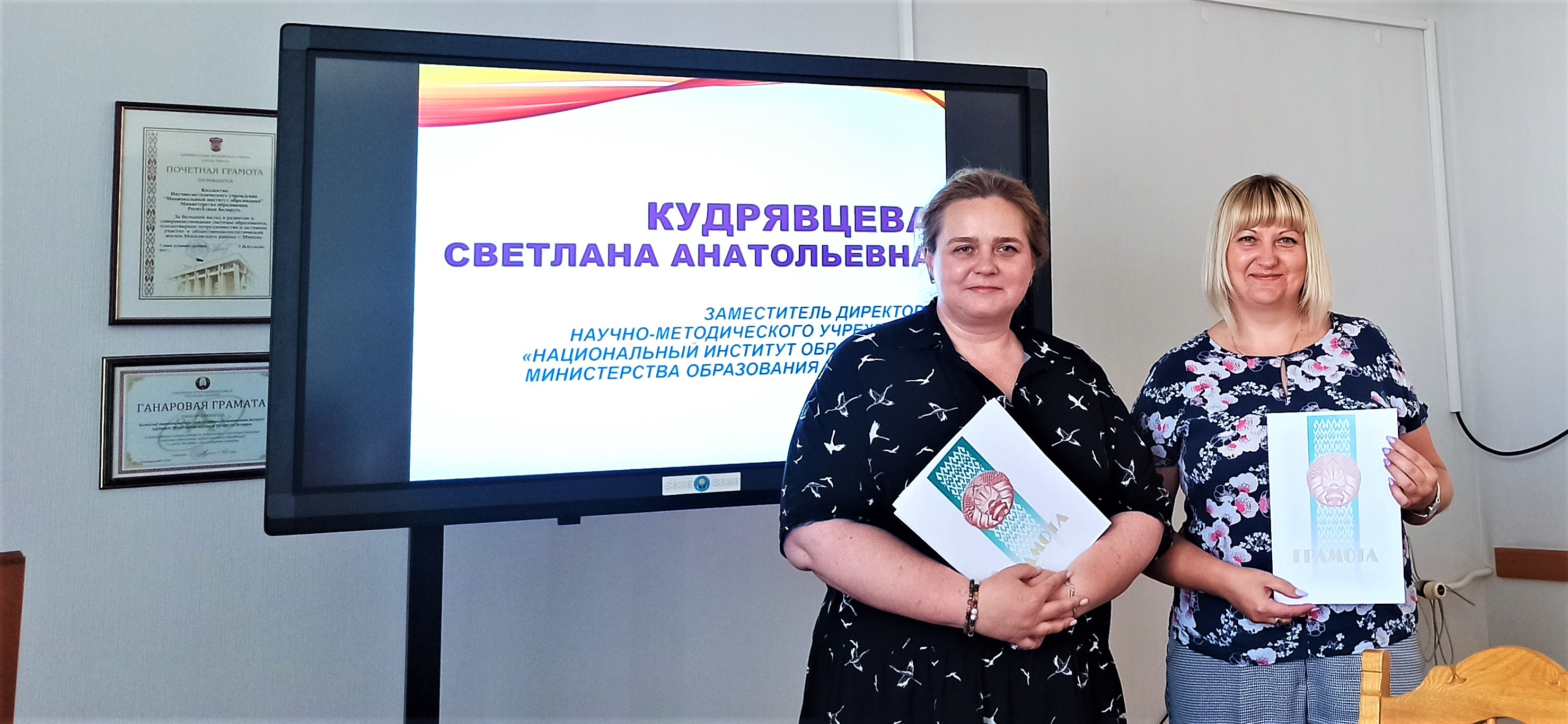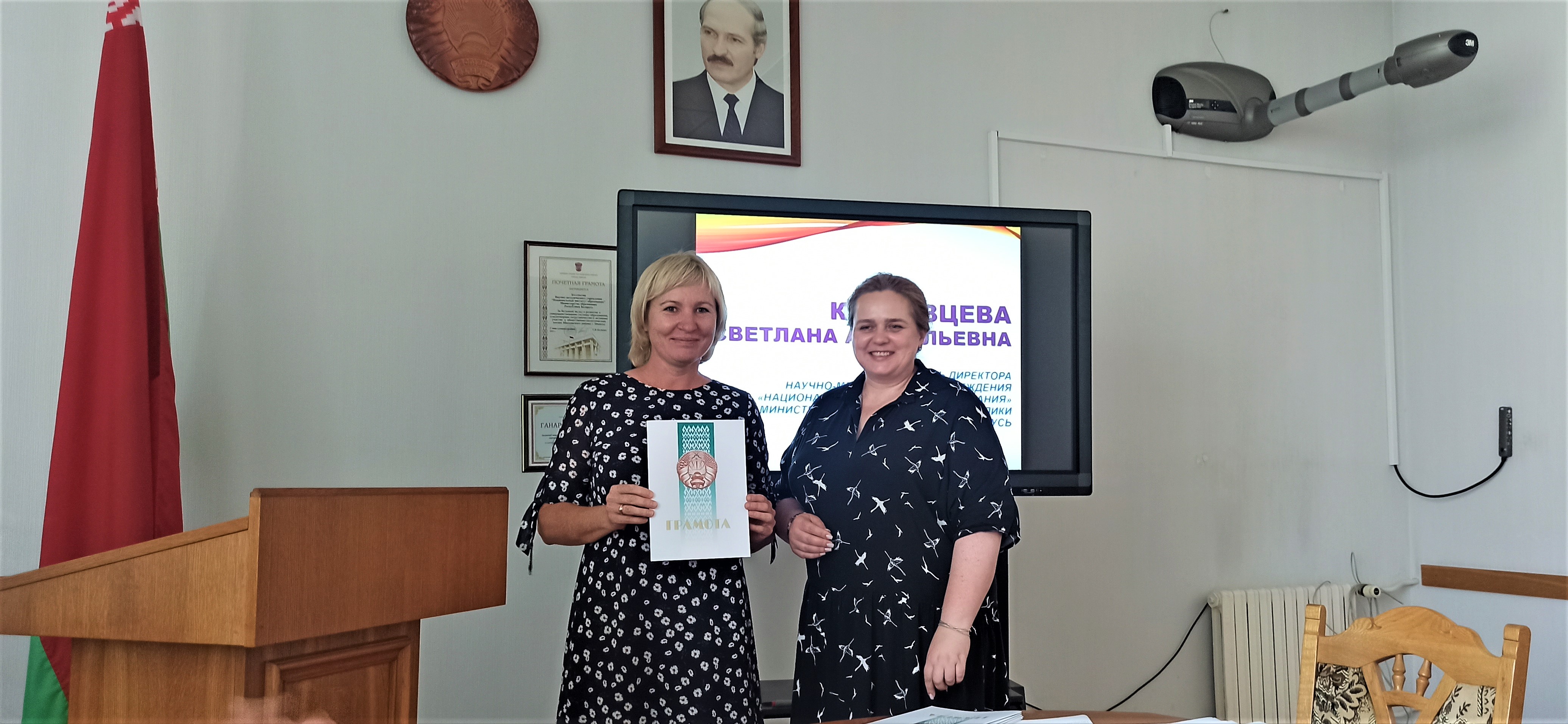 Были озвучены результаты изучения состояния, формирования и использования библиотечных фондов учебных изданий в учреждениях образования в 2022/2023 учебном году (Минская область, Вороновский, Ивьевский районы Гродненской области, Кричевский район Могилевской области). По итогам данного мониторинга за многолетний труд в системе образования, системную работу по обеспечению учреждений образования учебной литературой, высокий профессионализм и добросовестное исполнение служебных обязанностей Грамотами Национального института образования награждены 39 человек.