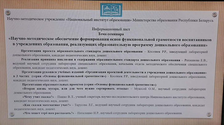 30 ноября 2023 года на базе Брестского областного института развития образования состоялся семинар «Научно-методическое обеспечение формирования основ функциональной грамотности воспитанников в учреждениях образования, реализующих образовательную программу дошкольного образования».