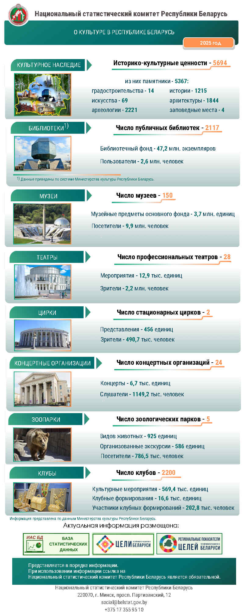 Нацыянальны статыстычны камітэт Рэспублікі Беларусь падрыхтаваў інфаграфіку, якая наглядна расказвае пра культуру нашай краіны.