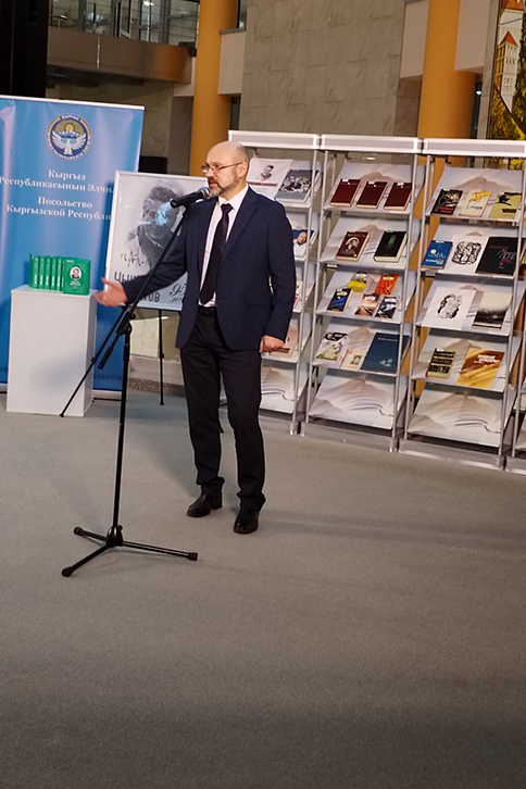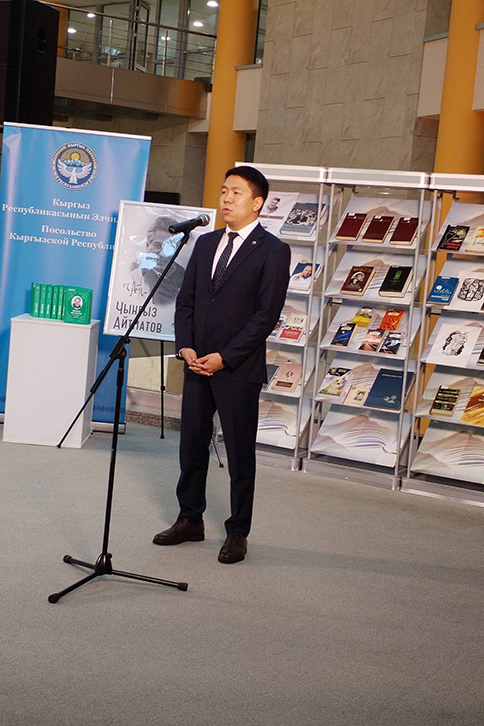 В Национальной библиотеке Беларуси состоялся кинопоказ фильма «Первый учитель», открылись фотовыставка и книжная выставка-просмотр. В мероприятии приняли участие Чрезвычайный и Полномочный Посол Кыргызской Республики в Республике Беларусь Эрбол Султанбаев, заместитель генерального директора Национальной библиотеки Беларуси Виктор Пшибытко, председатель Союза писателей Беларуси Александр Карлюкевич.