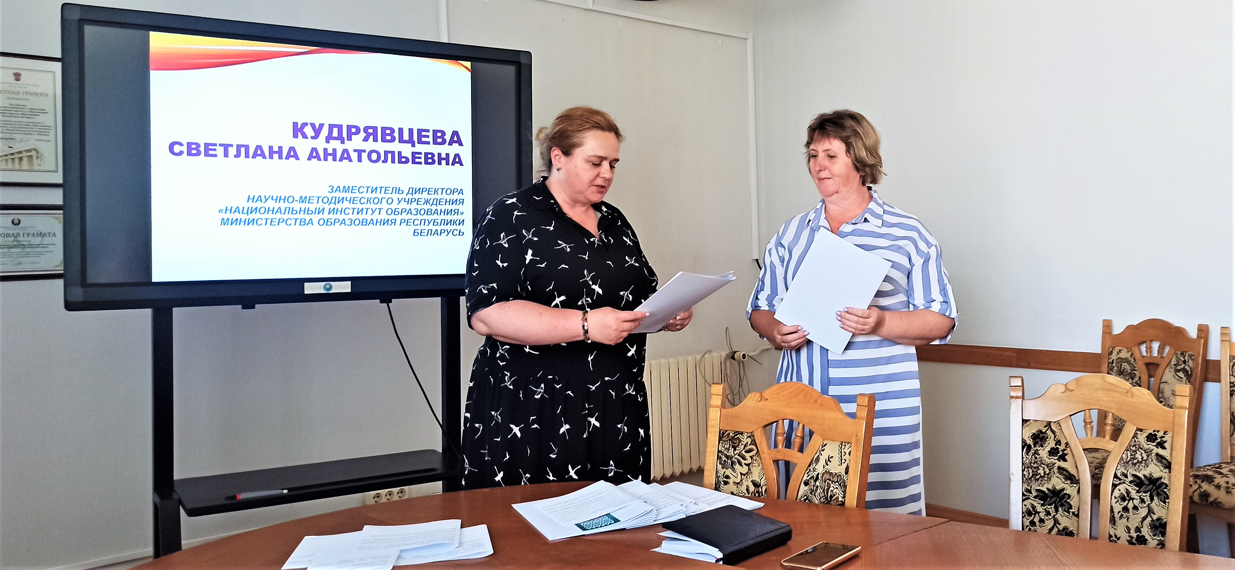 18 августа 2023 года в научно-методическом учреждении «Национальный институт образования» Министерства образования Республики Беларусь состоялось республиканское инструктивно-методическое совещание «Особенности формирования библиотечного фонда учреждений образования Республики Беларусь и использование учебных изданий в 2023/2024 учебном году» с участием методистов областных (Минского городского) институтов развития образования, методистов (специалистов) отделов по образованию Крупского, Логойского, Минского, Мядельского, Пуховичского, Солигорского, Столбцовского райисполкомов Минской области, Вороновского, Ивьевского райисполкомов Гродненской области, курирующих данное направление.