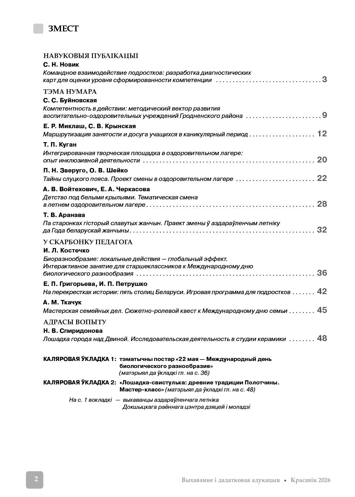 Апрельский номер журнала «Выхаванне і дадатковая адукацыя» традиционно посвящен теме летнего оздоровительного отдыха детей и молодежи.
